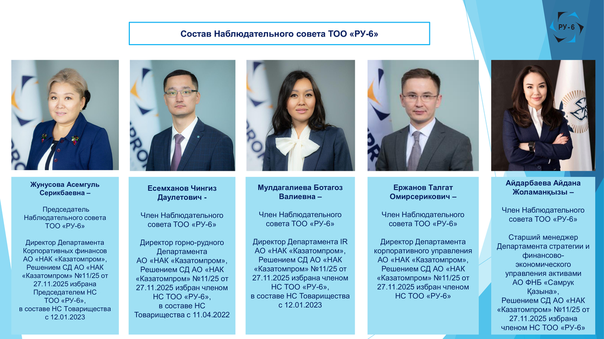 Информация о членах Наблюдательного совета ТОО «РУ-6»